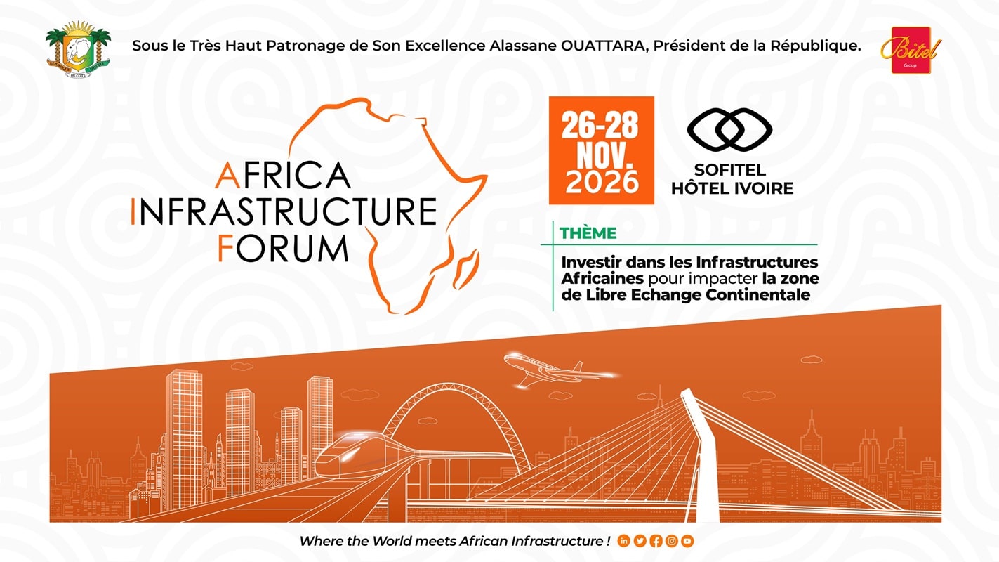 L’AFRICA INFRASTRUCTURE FORUM est l’événement incontournable réunissant les décideurs africains et les dirigeants d’entreprises influentes dans le domaine du financement des infrastructures en Afrique. Avec plus de 2000 participants, dont 300 PDG africains, 100 banquiers et financiers, et 200 personnalités de premier plan, ce forum offre un cadre propice aux échanges sur le développement économique des infrastructures, de l’habitat et de l’immobilier en Afrique. Co-hébergé par le Gouvernement de la Côte d’Ivoire, l’AFRICA INFRASTRUCTURE FORUM est bien plus qu’un événement, c’est une plateforme permanente qui favorise les connexions entre les décideurs africains, les investisseurs internationaux et les institutions de financement des infrastructures sur le continent.