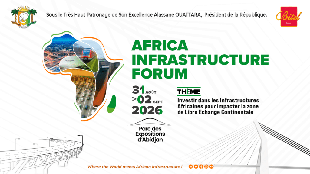 Le Gouvernement du Burkina Faso en partenariat avec BITEL GROUP organise le AFRICA INFRASTRUCTURE FORUM du 31 Août au 02 Septembre 2023 au Centre International de Conférences de Ouaga 2000 sous le thème « Investir dans les Infrastructures Africaines pour mieux impacter la Zone de Libre Échange Continentale ».
